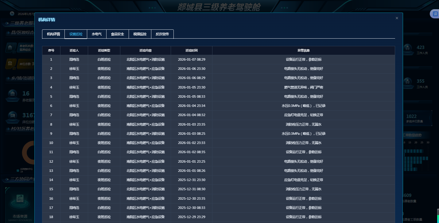 三级养老服务体系以市县级智慧养老平台为核心,联动医养结合机构与乡、村服务载体,依托村哥村嫂、志愿者等人员入户服务,实现各类机构水电气及重点区域智能监管。