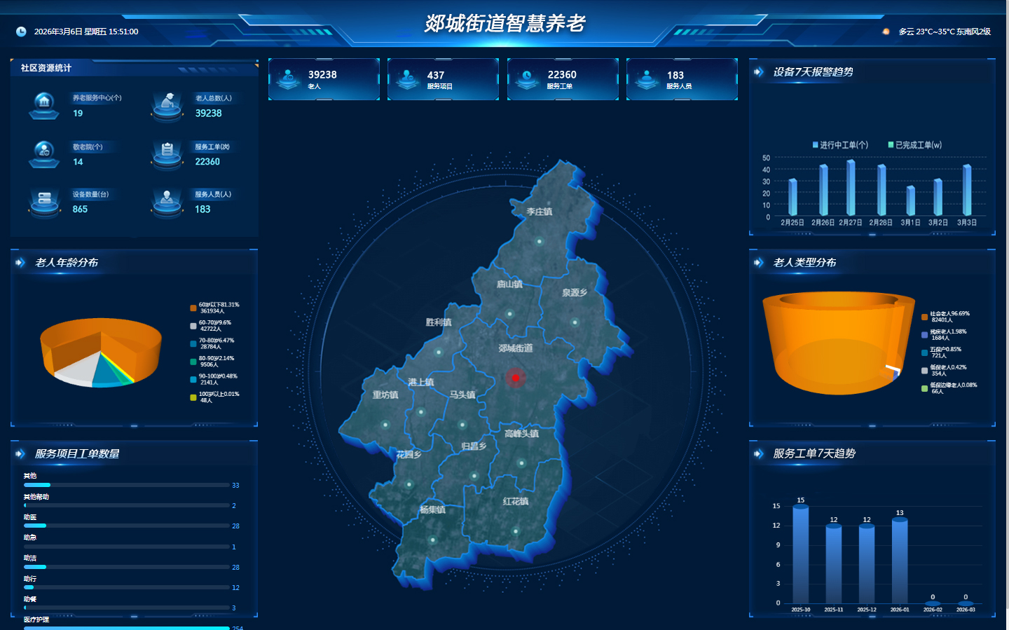 作为整套智慧养老体系的核心中枢,奉亲智慧养老云平台打破数据壁垒,整合健康管理、服务派单、安全监测、人员管理、长护险经办、家庭床位管理等多项功能,构建起集约化、数字化的运营管理模式。平台实时归集长者健康档案、用药记录、护理日志、服务工单等数据,实现老人健康状况可追溯、服务流程可监管、工作成效可考核,让养老服务从“粗放式”转向“精准化”。
